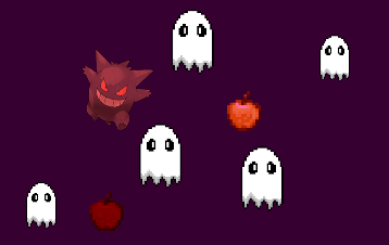 Coma todas as maçãs em menos de 15 segundos para se safar dos fantasmas. Atenção!!! Não deixe os fantasmas te pegarem!